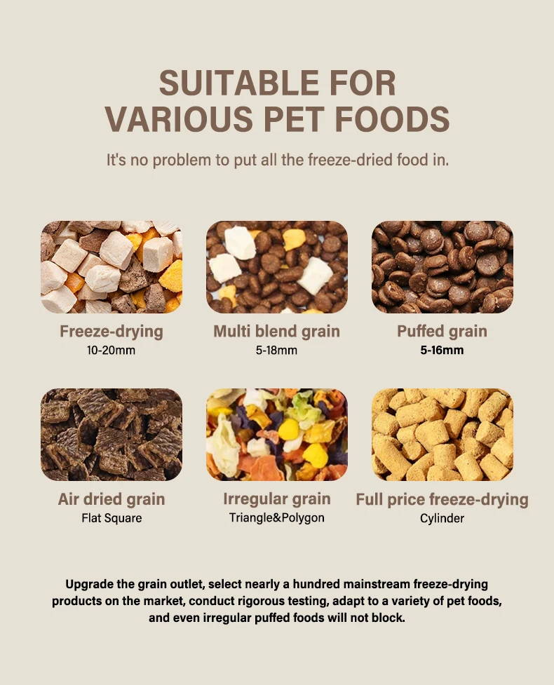 - Wide Grain Outlet Design Helps prevent food jams for smooth dispensing.